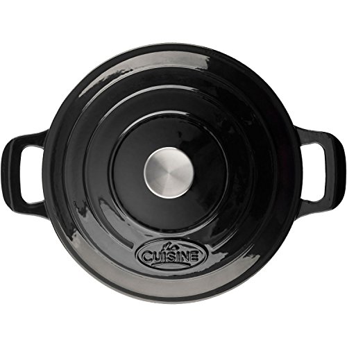 Cast iron construction with fine enamel exterior finish for oven or stovetop (including induction)