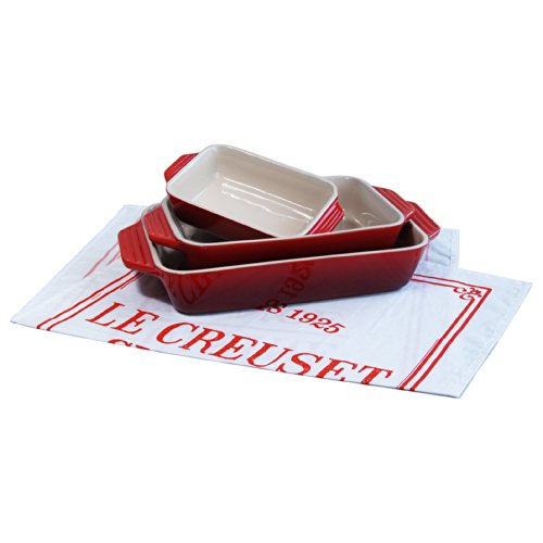 Le Creuset Stoneware 3 Piece Rectangular Casserole Dish Set with Free Bonus Cuisine Towel