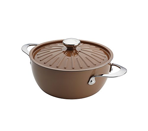 Create memorable meals with the Rachael Ray Cucina Oven-To-Table Hard Enamel Nonstick 4.5-qt. Covered Round Casserole. Durable aluminum construction that promotes fast, even heating on the stove and in the oven, as well as a nonstick interior that releases foods effortlessly make this a coveted piece in the kitchen. The casserole dish features double-riveted stainless steel handles for secure carrying and is over-safe for added convenience.