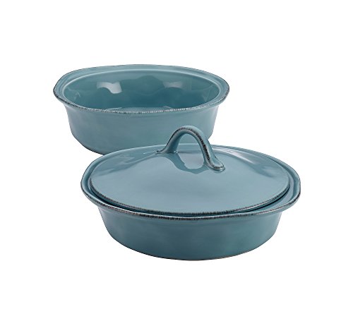 Freshen up your buffet or table presentation with the Rachael Ray Cucina Stoneware 3-pc. Agave Blue Round Casserole & Lid Set. This stylish set features a 1.5-quart and a 2-quart baker along with one lid that fits either, so you can use them together or separately. Try using them to heat two different party dips in the oven, a main dish in the oven and a side in the microwave or any number of other combinations.