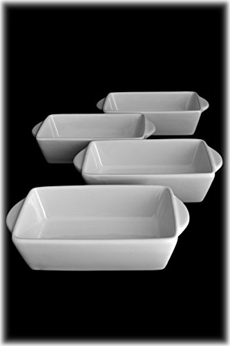 Set 4 Individual Portion Oven-to-Table White Porcelain Casserole Baking Dishes