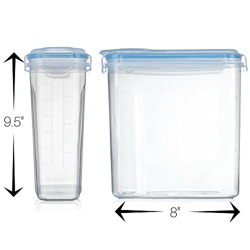 KEEP YOUR FOOD DRY & SAFE – With this set of amazing plastic containers, you can safely store away your food without worrying about insects, rats or other pests. They are suitable for cereal, snacks, flour, nuts, sugar, coffee, tea, dry pet food, or anything else you may need to store! Dimension of each container is 135.2 oz.
