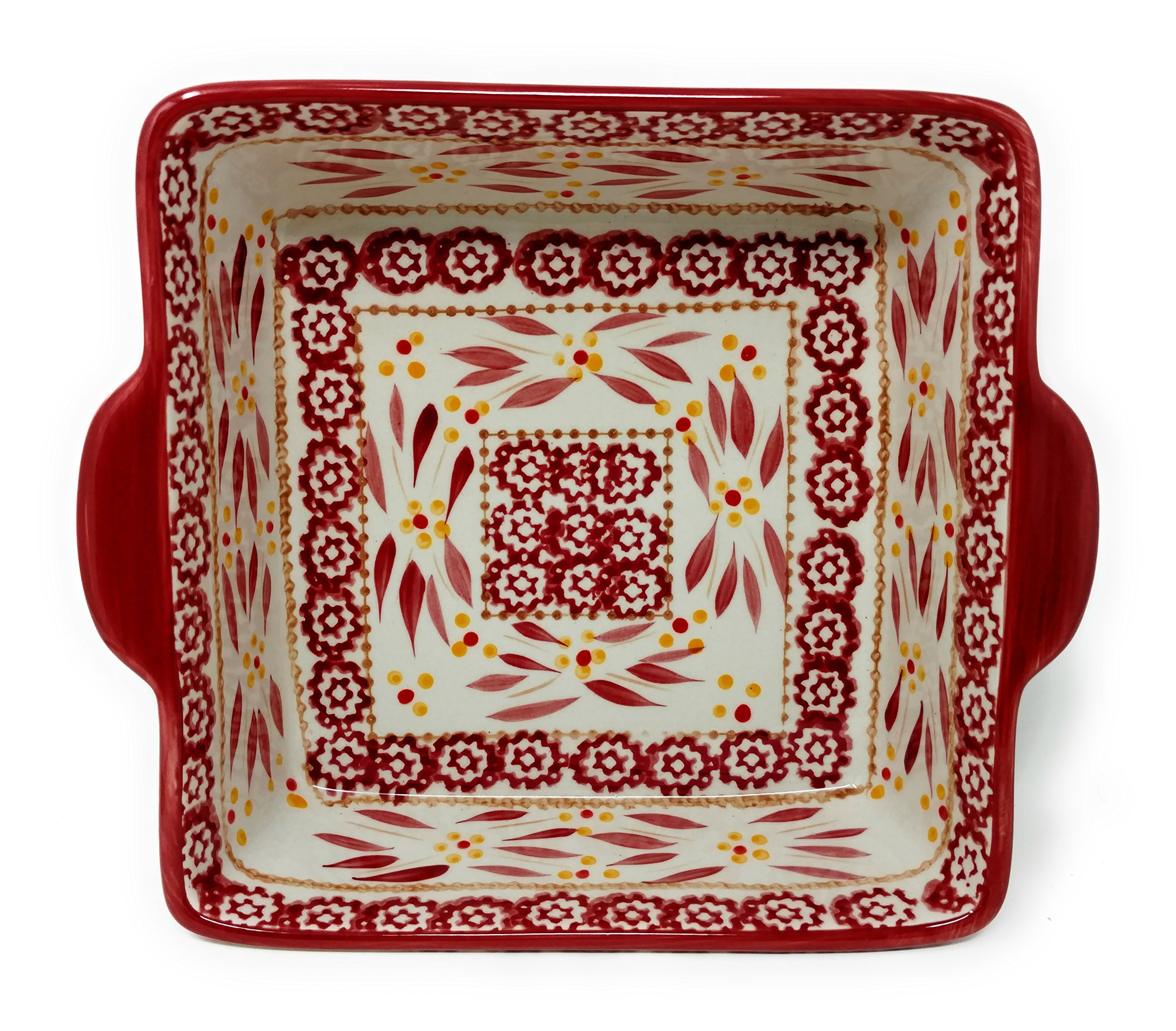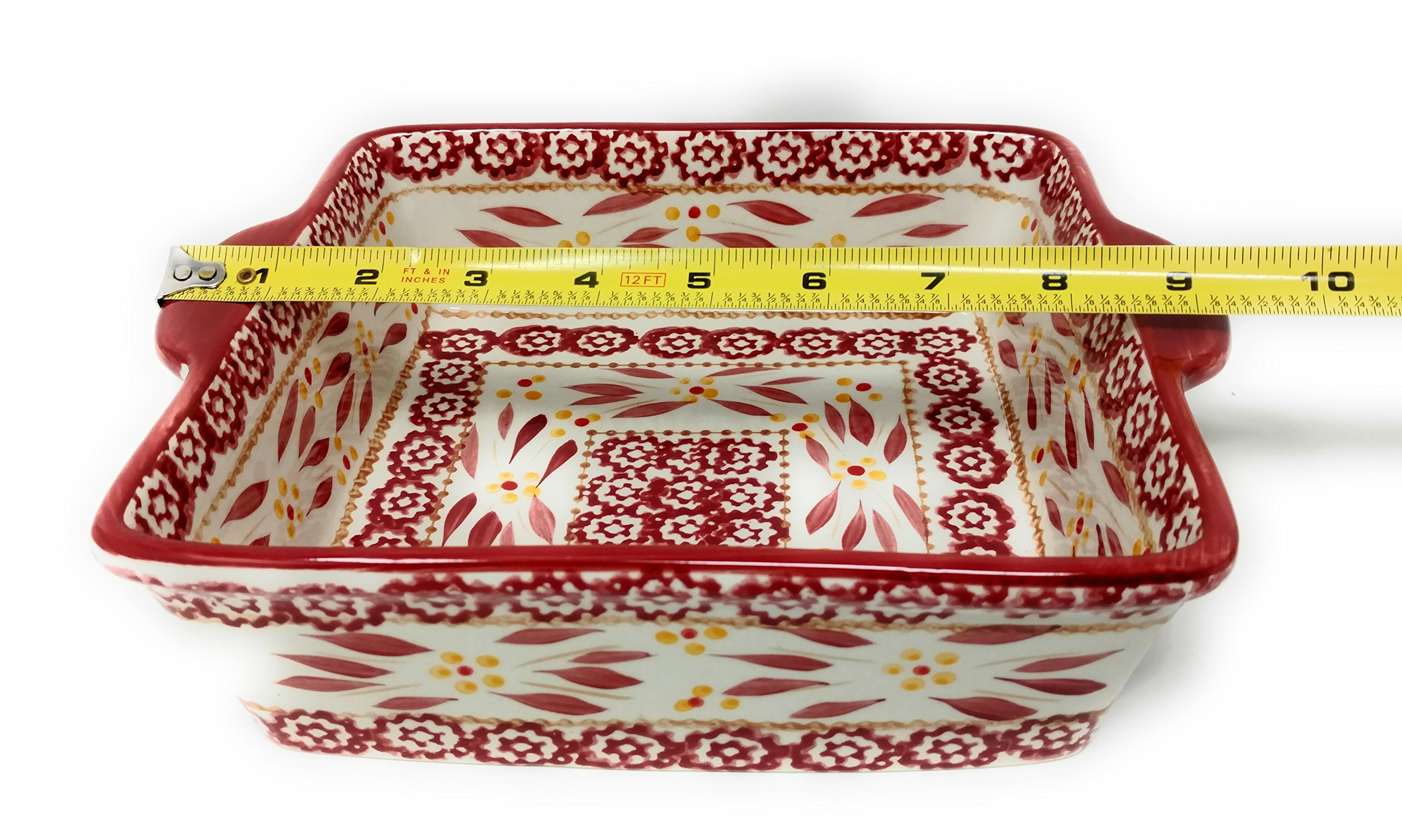 Handpainted Old World pattern; Measures Approx: 8″W x 8″L x 2.75″H