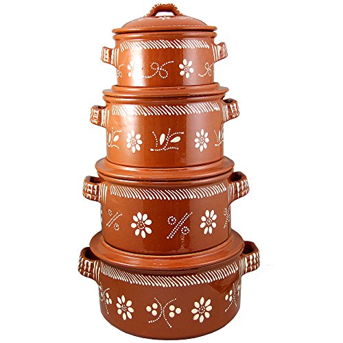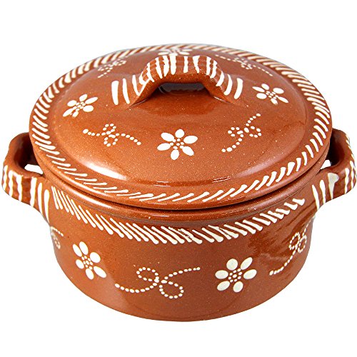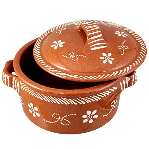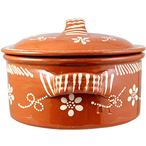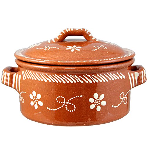 Vintage Portuguese Traditional Clay Terracotta Cazuela Casserole With Lid Made In Portugal (N.1 6 5/8″ Diameter)