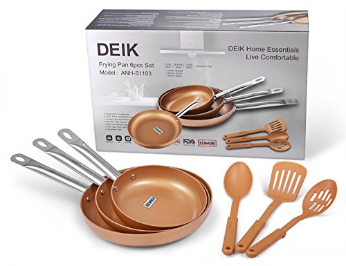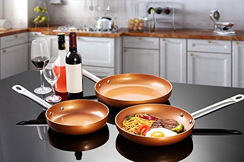 NON-STICK – Top grade ceramic coated copper coating, easy cooking and healthy eating with less oil or butter, convenient cleanup, NO PFOA/PTFE/Lead/Cadmium