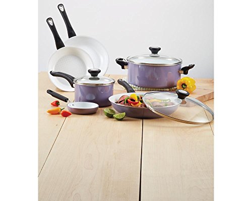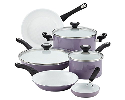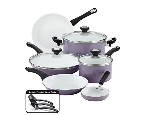 Web exclusive! Update your kitchen to the Farberware PURECOOK Ceramic Nonstick 12-pc. Cookware Set. Nonstick interiors offer easy food release, aluminum construction heats fast and evenly and the glass lids allow you to monitor the cooking process while keeping in moisture. Best of all, these pieces are dishwasher safe so cleanup will be a breeze. Three sturdy nylon tools are also included in this cookware set for added convenience.
