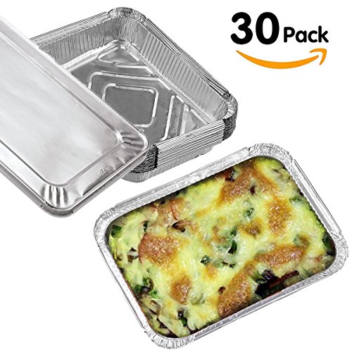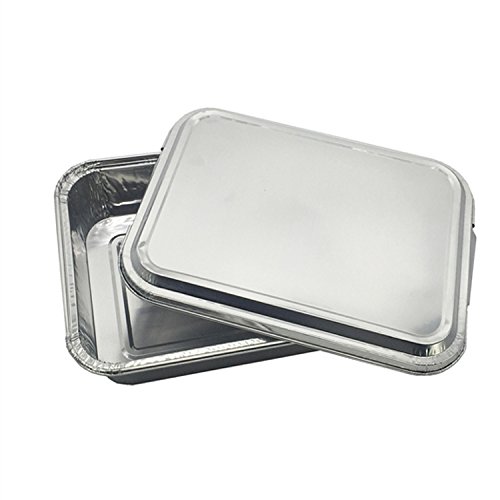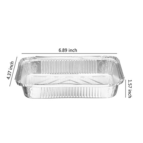 *Ideal size:The baking pans’ length and width are enough to hold your dishes.Each foil pan is 400ml with an aluminum foil cover.Top out measures 6.89×4.37 and top in 5.63×3 in. Depth 1.57 in
