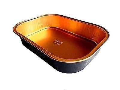 MINI (1 lb.) BLACK & GOLD FOIL TAKE-OUT PAN W/MATCHING CLEAR DOME PETE LIDS (pack of 10) PRODUCT FEATURES: Mini (1 lb.) Black & Gold Foil Container w/Clear Dome PETE Lids Perfect Size For Carry Out, Pasta, Veggies, Side Dishes, And More! Dimensions: 6-3/8″ L x 4-21/32″ W x 1-1/4″ H 16 Fl. Oz. Capacity Made with Heavy Duty 55 Gauge Black/Gold Coated Aluminum Extremely Sturdy Pans, Will Not Easily Crush or Bend.Crystal Clear Food Presentation via Sturdy Clear PETE Dome Lids Can Go Straight From Oven to Table Easy Stacking for Both Pans & Lids, Both are 100% Recyclable Dual Oven Safe – Microwave & Conventional Oven Safe Withstands Temperatures Up To 450°F Used by Many High-End Restaurants and Caterers Across America OU Kosher Certified, Made in Wheeling, IL USA.