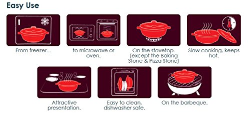 30% LIGHTER. Weighs up to 30% lighter than many types of heavy cast iron or metal cookware. EASY TO CLEAN. Dishwasher Safe or hand wash with soap and water.