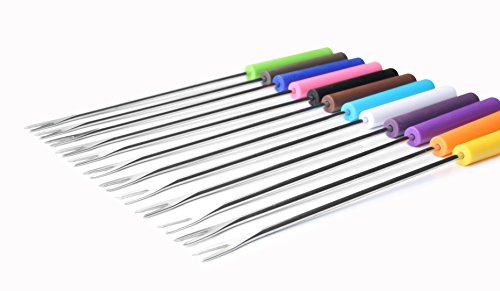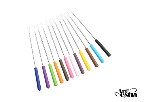 Artestia Stainless Steel Fondue Forks 9.6″,Set of 12 Coding Cheese Fondue Forks with Heat Proof Handle in Vivid Colors for Cheese Chocolate Fondue Roast Marshmallows Meat