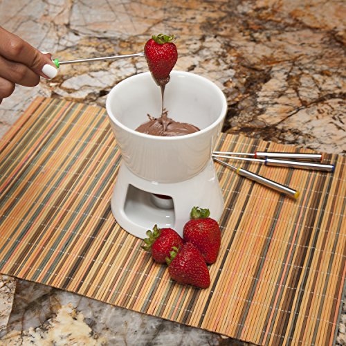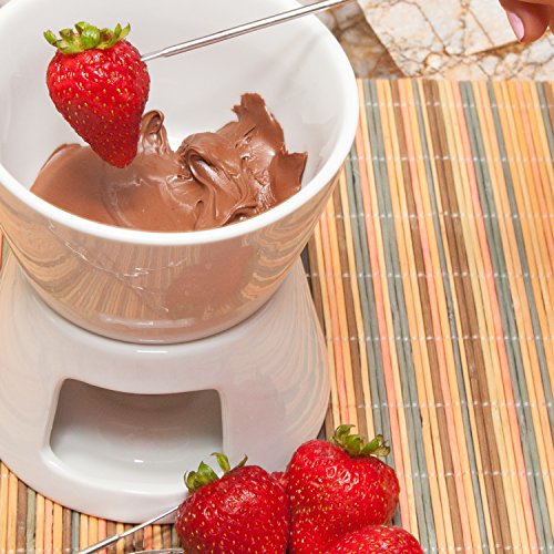 Ceramic Chocolate Fondue Set w/Forks – Tea Light Porcelain Melting Pot w/Fondue Dippers