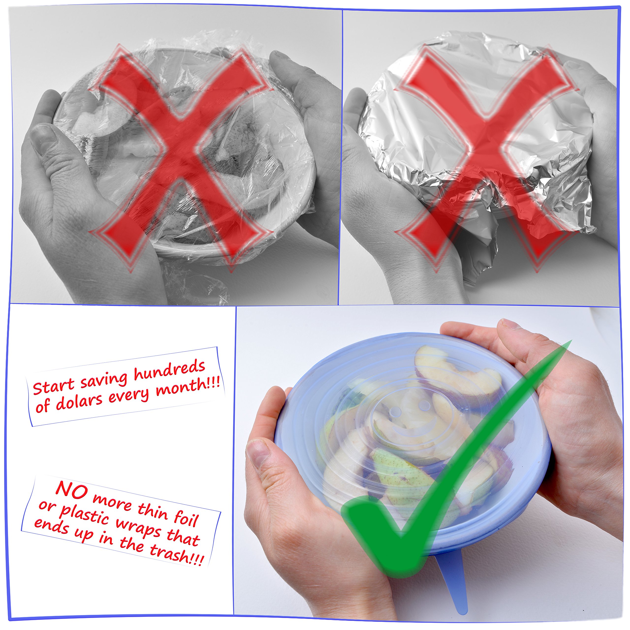 🍎AIR-TIGHT AND LEAK PROOF: Air tight seal, non-toxic leaching additives into your food.Thanks to this unique property, it can be used on fresh cut food, fruits or vegetables like: egg plants, salads, tomatoes, onions, cabbages, pineapples, apples, pears, kiwis and even for watermelons. No more shrink wrap! Ideal covering for steaming and reheating food, even in the oven heat-resistance up to 450 F, keep just how you want,fresher for longer enjoy delicious leftovers