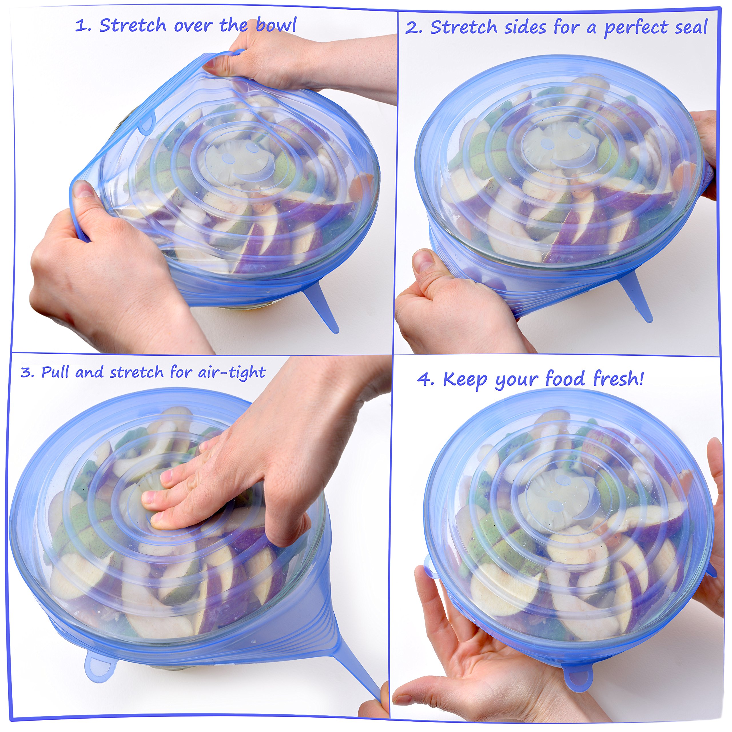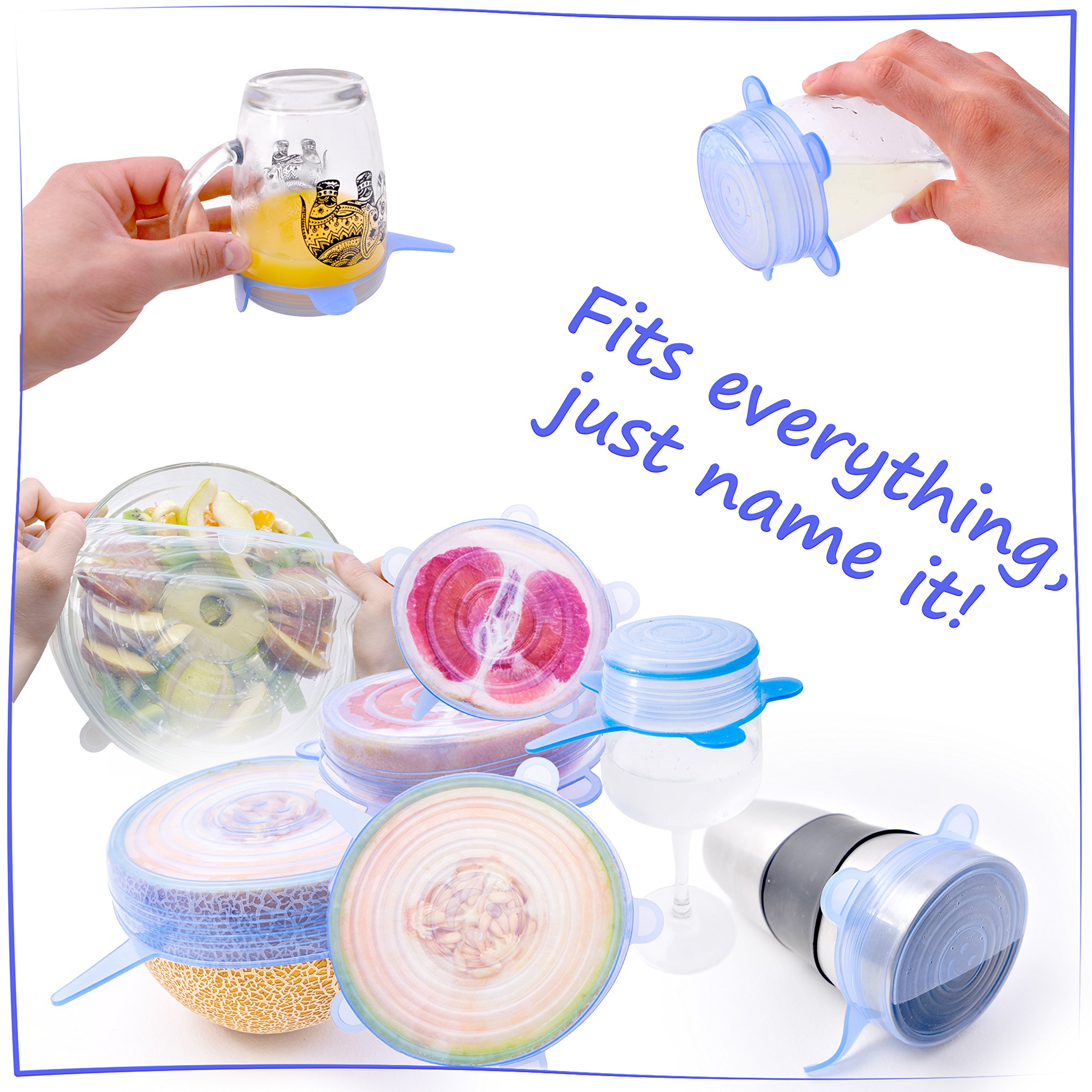 🍰KEEP FOOD FRESH FOR LONGER: FDA compliant, food grade silicone rubber and BPA free, can be reused to preserve food again and again, fit and fresh. Either you are preparing, storing or serving , 2 X 6-pack food huggers are a kitchen best friend. Of course, different sizes of food or containers demand different sizes of lids. Don’t worry. We have got you covered. Start saving food the smart way with elastic Silicone Stretching Suction Lids. Use them as a splatter guard in the microwave.