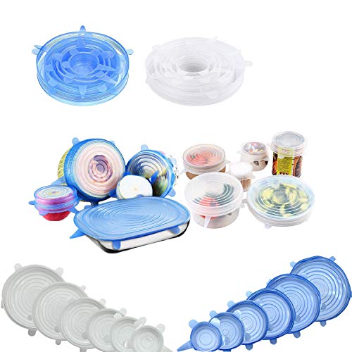 3.Contains variety of the lid sizes: 6 different sizes,2 Colors .white and blue silicone lids,stretch and fit tight on any container.