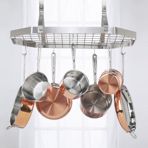 Contemporary Stainless Steel Octagonal Hanging Pot Rack