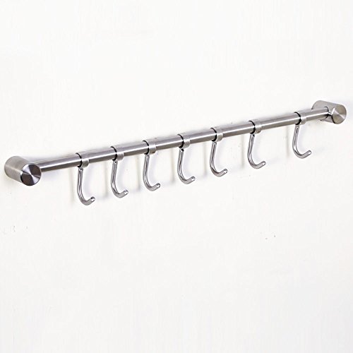 eForwish 304 Stainless Steel Kitchen Utensil Racks with 7 Hooks Hangers Wall Mounted 15″