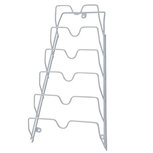 Lightweight and easy to move to any area needed, simply screw lid holder onto the inside of a cabinet, cupboard, pantry, or wall. Make sure to use the appropriate hardware for the job and follow the mounting instructions 3/4″ screws, and Sheetrock screws included. Made out of strong iron coated in white plastic to prevent rust. Measures approximately 9.5″L x 3.25″W x 16.75″H.