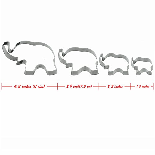 Package include 4 different sizes of elephant stainless steel cookie cutters.
