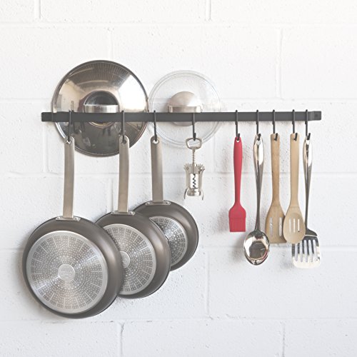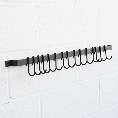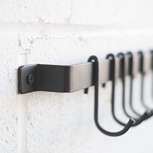 Wallniture Casto 30″ Gourmet Kitchen Rail with 15 S Hooks for Hanging Kitchen Utensils Set and Cookware, Iron, Frosty Black