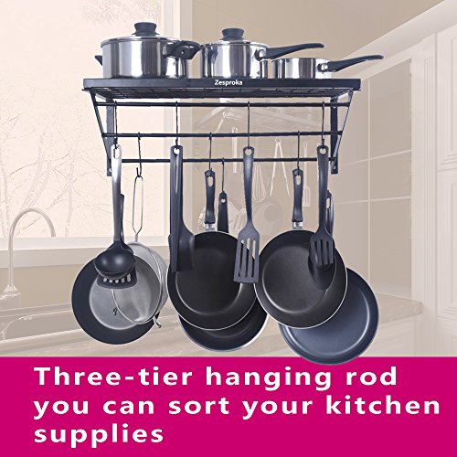 ZESPROKA FBA_JW-SL5E-AJVR Kitchen Wall Pot Pan Rack,With 10 Hooks,Black