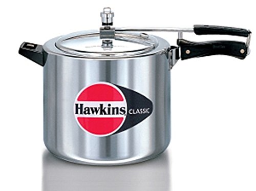 Large 10 Liter new improved Hawkins classic aluminum pressure cooker with separator made from commercially pure, virgin aluminum stay cool handles- this pressure cooker comes with a separator so you can cook two or more dishes at The same time- aluminum construction- pressure safety valve- Stay cool handles- for gas stoves- Color name metallic- material Hard Anodized aluminum.