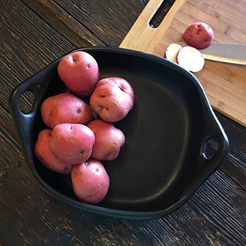 Whether you’re roasting meats, chicken or vegetables, these roasting pans perform beautifully. Its clay form heats up evenly and keeps food warm long after it is removed from the oven. Length 14in (handles included), Width 11in (from outside), Height 3.7in and Capacity 2.5qt (filled comfortably without overflowing). Use for serving as well as for roasting with the ease of handles for handling with a great presentation especially for whole poultry, lasagna or other baked pasta dishes. Completely natural and safe, contains no toxins or lead and the porous nature of the clay allows the slow evaporation of steam and produce food that is healthier, tastier, and moist using less fat and liquids. Will last many years with proper use and care (each piece comes with a product information sheet outlining the Uses and Care for the product). Black Clay, La Chamba Cookware, is well-known and used throughout Colombia in restaurants and homes for preparing and serving traditional dishes. Its origins can be traced back at least 700 years to vases and pitchers found in pre-Columbian archaeological sites. It is still made in the traditional manner, by families in a small village on the banks of the Magdalena River in Central Colombia. Each piece is hand-made using local area clays, then hand burnished with a stone. The pieces are then fired in the village, giving them the distinctive black color and elegant look.