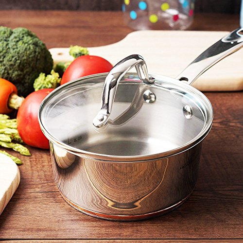 HOMI CHEF Mirror Polished NICKEL FREE Copper Band Stainless Steel 2.5 QT Sauce Pan with Glass Lid (No Toxic Non Stick…
