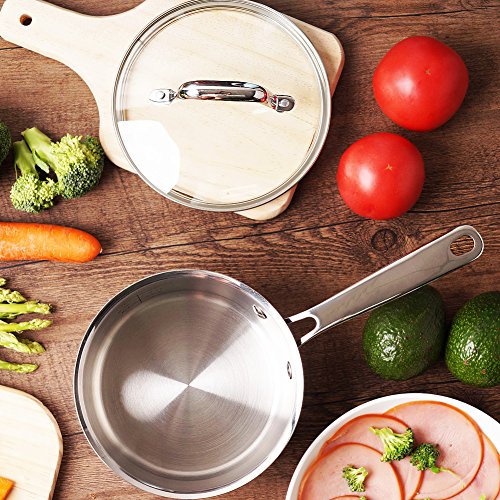 NO NON-STICK COATING NO RISK – General non-stick coating cookware releases toxic fumes when cooking; is known to cause cancer and disrupt immune system. As it becomes worn, the risk of ingesting Teflon increases drastically. Our stainless steel sauce pan does not apply any coating, and is free of health hazard. 3-Ply construction & heat surround features allow for even heat conductivity and distribution to eliminate hot spots; thus achieve natural stick resistance without toxic PFOA and PTFE.