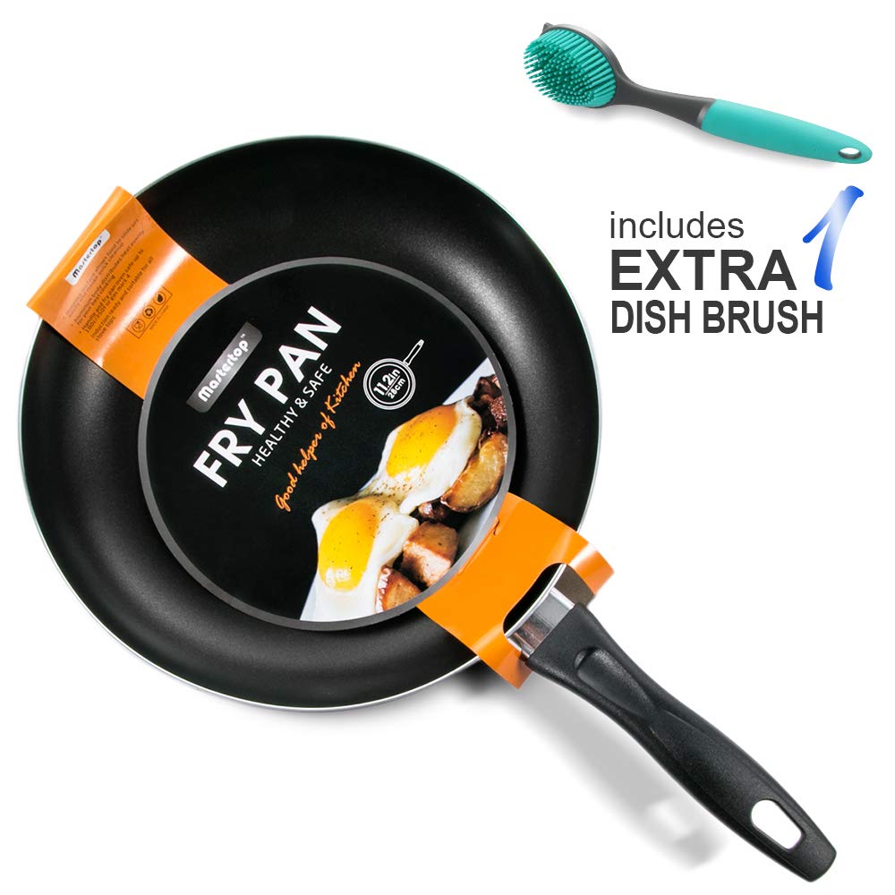 MASTERTOP 11.2 In Nonstick Frying Pan Aluminum Cookware Durable Cooking Pan with 1 Pcs Pot Brush