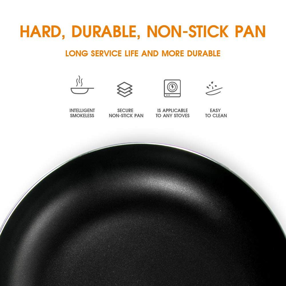 super nonstick coating allows food to slide off, durable and wear resistant. 100% safe and healthy cooking as PFOA/lead/cadmium free.