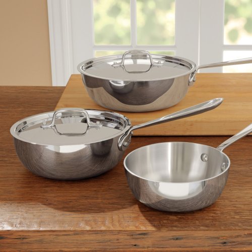 All-Clad 4213 Stainless Steel Tri-Ply Bonded Dishwasher Safe Saucier Pan with Lid / Cookware, 3-Quart, Silver –