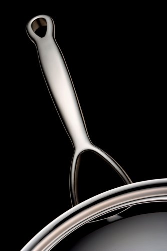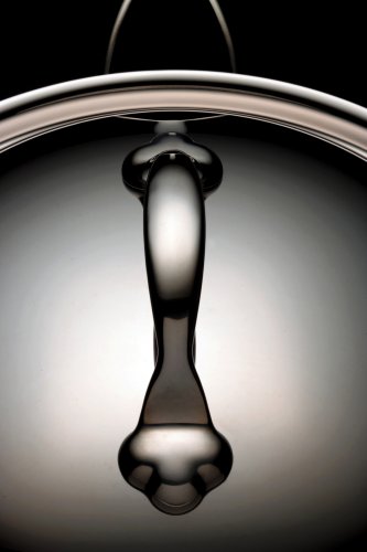 2.5 quart covered saucier-clad stainless steel; rounded base and wide diameter for sauce reduction