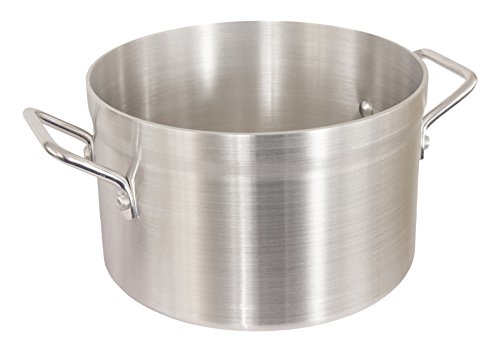 Crestware, SAU18, 18 Quart Saucepot is constructed of durable 3003 Series Aluminum that is pressed, not spin for a consistent thickness resulting in even heat distribution. Saucepots features reinforced rim and anti-slip handles.