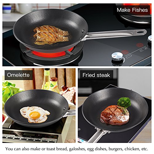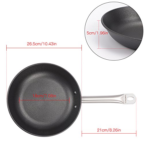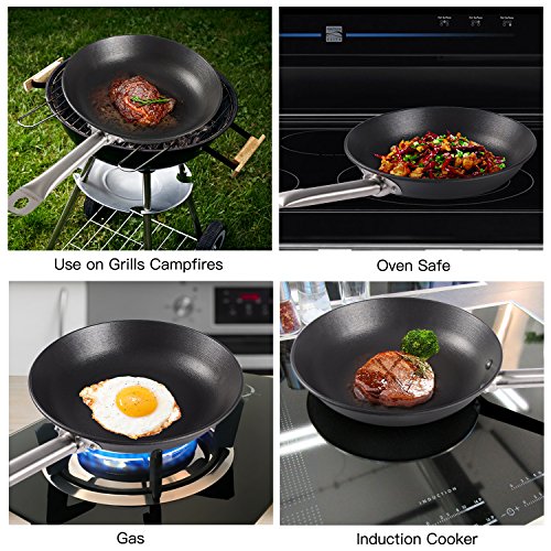 [100% IRON]: Cooking food in a iron skillet can increase iron content by as much as 20%. fry, bake, sauté, grill, broil, braise, sear with your skillet. Oven safe up to 500F(260℃)