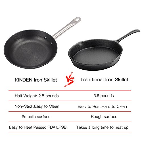 KINDEN Pre-Seasoned Cast Iron Skillet Pan Lightweight, 10.43 Inch