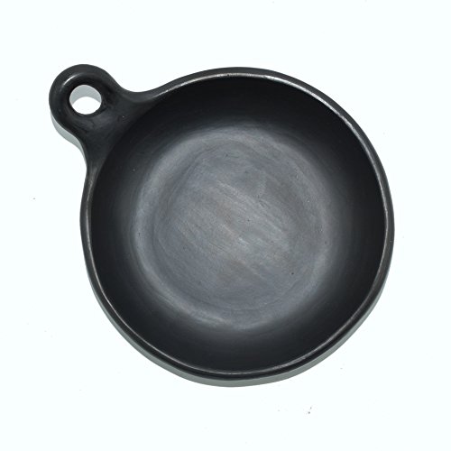 Round sauté pan in black clay from La Chamba. Length 10.0in (handle included), Width 8.5in (from outside), Height 2.0in, Diameter 7.75in and Capacity 32oz. Use for cooking on direct heat or in the oven and serve sizzling dishes with a beautiful presentation. Completely natural and safe, contains no toxins or lead and the porous nature of the clay allows the slow evaporation of steam and produce food that is healthier, tastier, and moist using less fat and liquids. Will last many years with proper use and care (each piece comes with a product information sheet outlining the Uses and Care for the product). Perfect for slow cooking soups, stews, and casseroles, and serve in the table for a great presentation. Black Clay, La Chamba Cookware, is well-known and used throughout Colombia in restaurants and homes for preparing and serving traditional dishes. Its origins can be traced back at least 700 years to vases and pitchers found in pre-Columbian archaeological sites. It is still made in the traditional manner, by families in a small village on the banks of the Magdalena River in Central Colombia. Each piece is hand-made using local area clays, then hand burnished with a stone. The pieces are then fired in the village, giving them the distinctive black color and elegant look.