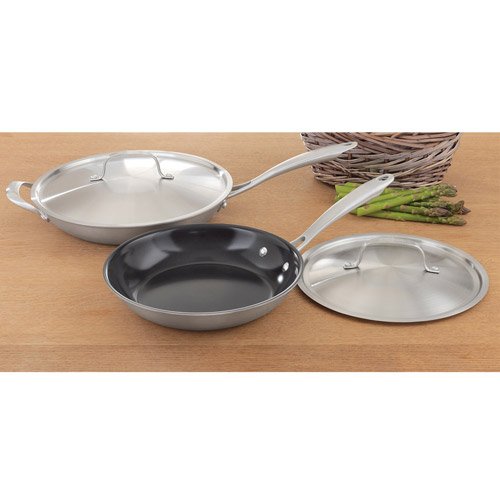 Delivering cooking for today’s health-conscious cooks, these skillets are ideal for creating everything from omelets to sauteed vegetables and so much more! Exclusive Culinary Ceramica Nonstick Technology is PTFE/PFOA-free and the petroleum-free ceramic-based nonstick interior helps to reduce oil consumption and preserve the environment. It has professional true tri-ply construction that features an aluminum alloy core bonded to an induction-ready stainless steel exterior and a stainless steel interior with our Exclusive Cuisinart Ceramica nonstick surface for superior heat conductivity. The Cuisinart Ceramica nonstick surface makes it easy to cook low-fat meals and the superior construction is suitable for all stovetops. Brushed stainless steel exterior gives a professional look and performance. Riveted stainless steel stick handles stay cool and are made from 70-percent recycled stainless steel. Our packaging is made from 100-percent recycled materials and is printed with soy ink.