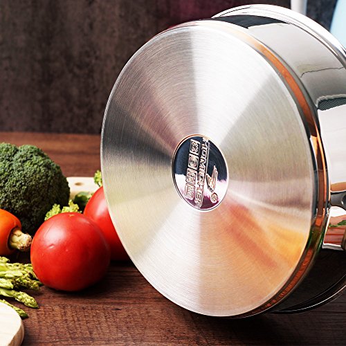 MIRROR POLISHED & COPPER BAND – This mirror polished copper band 4.5 QT stock pot is noble and elegant; cuts a fine figure both in the kitchen and at the dining table – Exterior copper band on the bottom combines superior culinary performance with classic beauty; offers fast and even heat conductivity, thoroughly from exterior to interior – Great for simmering stews, soups, cooking pasta, risotto and vegetables, or braising foods – Discover the gourmet chef in you with this beautiful stock pot.