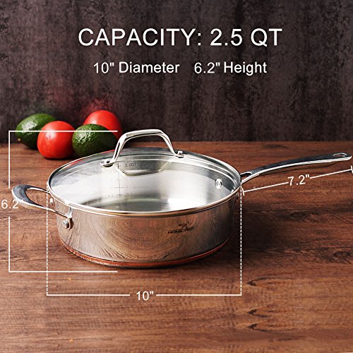 HOMI CHEF Mirror Polished NICKEL FREE Stainless Steel 4.5 Quart Stock Pot with Glass Lid (No Toxic Non Stick Coating, 9…
