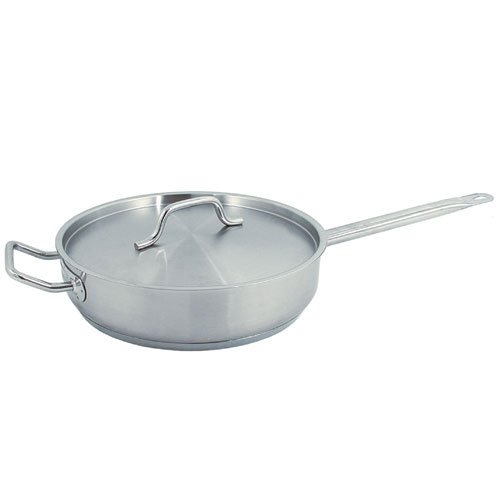 Our 18/8 SuperSteel sauté pans feature a capsule bottom and helper handle. This 3-quart aluminum saute pan is a chef’s best friend. Designed for use in restaurants, cafes, bakeries, banquet halls and by caterers, this versatile design helps facilitate fast, even cooking. Our Super Stainless Steel sauté pans feature a thick construction that allows for exceptional heat distribution. Measures: 10″ x 2-3/4″. Included with this quality filled item is its well functioning cover. Easy to clean and maintain, this high-quality saute pan produces superior results, making this chef’s utensil a staple in kitchens worldwide! NSF Listed.