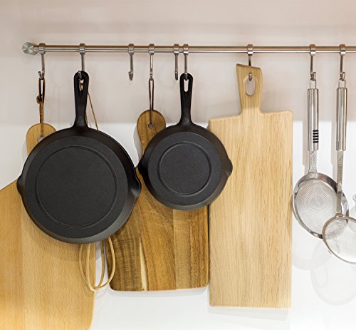 HEAVY DUTY 3 PIECE SET – 10 inch, 8 inch & 6 inch cast iron frying skillets are a timeless must-have for every kitchen. Can sauté, sear, fry, bake and stir fry. Each handle with the hole at the end for convenient hanging storage when not in use.