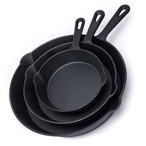HUFTGOLD Pre-seasoned Cast Iron Skillet Pan Set of 3, Quality Heavy-Duty Cast Iron Frying Pans For Grill,Stovetop…