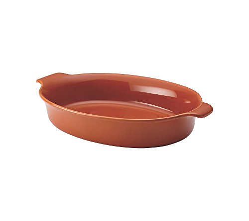 The Anolon Vesta 3-qt. Oval Au Gratin, Persimmon Orange is an ideal piece for delicious potatoes, desserts and other side dishes. Crafted from sturdy oven-safe stoneware, this dish features curved handles for a safer grip and tapered walls for easy release of food. Serve with confidence using this practical and elegant Au Gratin.