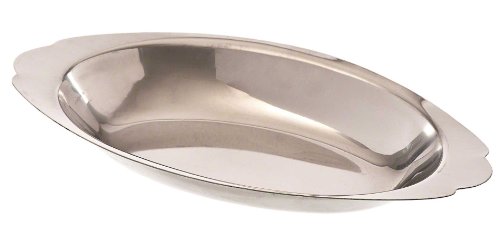 This Au Gratin dish is made of stainless steel with a mirror finish. It involves putting butter and breadcrumbs on top of a casserole for an appetizing crunch in the dish. With this dish, you will be well-equipped to facilitate the Au Gratin cooking process easily. This dish has a striking appearance that will beautifully compliment any surrounding décor. Comes with 8-ounce capacity and oval shape. Measures 8-inch width by 4-1/2-inch depth by 5-8-inch height.