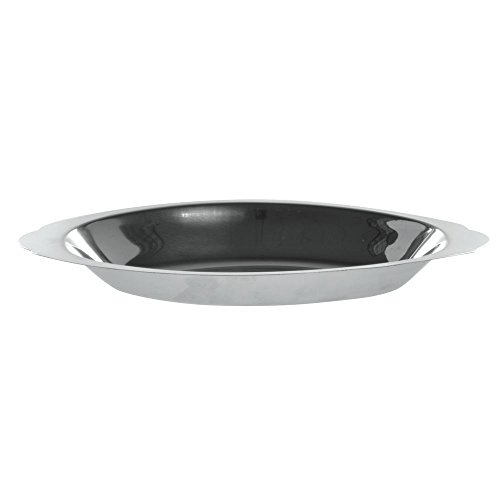 Stainless oval gratin dishes take the work out of heating and serving. They go from oven or broiler to the tabletop for quick service of personal or shared starters, main dishes, specialty sides, and hot desserts. Stainless oval gratin dishes feature a bright sheen that makes food look great. The oval silhouette matches other serving pieces and stacks easily to take up minimal storage space. Stainless oval gratin dishes are a great choice for mac ‘n cheese and other hot appetizers and vegetables.