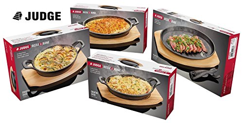 Judge Sizzle & Serve Cast Iron Gratin Dish with Wooden Platter, 20x14cm JST65