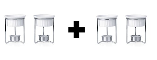 Ceramic is the material of choice for over-the-candle warming because it holds in the heat without letting the flame burn your butter or damage the delicate texture of your sauce. Ideal for serving melted butter with artichokes, lobster and other seafood, this set of two butter warmers feature a classic white ceramic dish with a stainless steel body that holds the tealight.