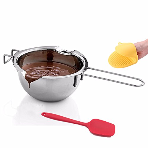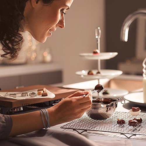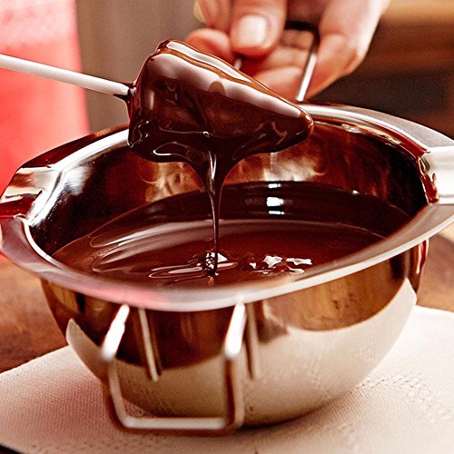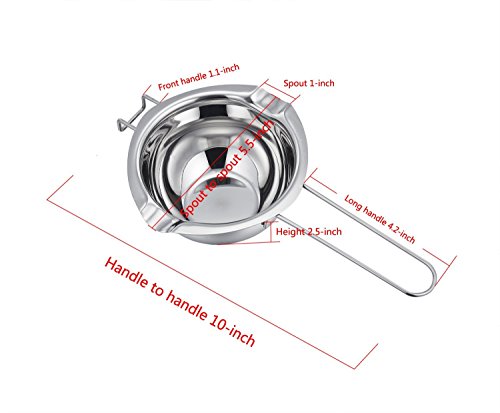 PureSec 2017 Small 18/8 Stainless Steel Baking tools Universal Melting bowl is made of high quality food grade rust resistant 18/8 stainless steel, which is safety and healthy. It has a pour spout on either stuff which is great for filling, also the long handle design make it easy to hanging. Moderate size make it perfect for making home made small batches and testing products. We are sure this item will appear frequently in your kitchen and you would love it