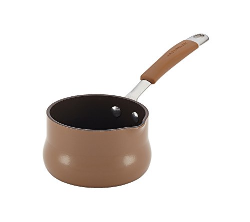 Melting and warming is a breeze with the Rachael Ray Cucina Hard Enamel Nonstick 3/4-qt. Mushroom Brown Butter Warmer. Featuring a small size for melting and heating foods quickly, this pot has a handy spout to make pouring melted butter, warm milk and more a breeze. The dual-riveted rubberized stainless steel handle makes carrying it safe and comfortable, while the PFOA-free nonstick coating ensures cleanup is effortless.