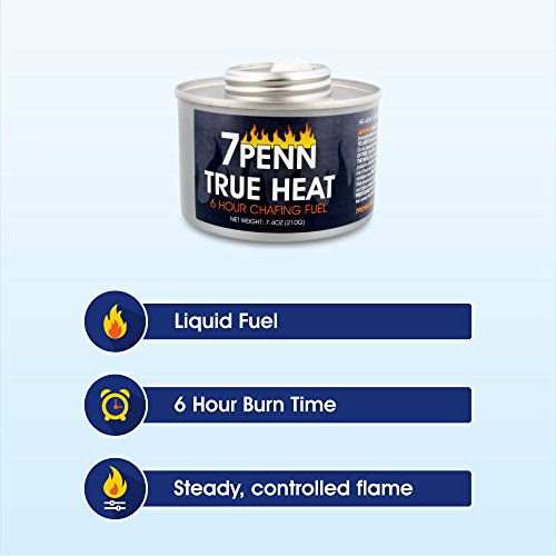 KEEP FOOD HOT: The 7Penn Wick Chafing Dish Fuel with FREE Lid Opener – Food Warming, Heated Cans, Chaffing Burner, Buffet Warmer keeps food hot and safe for all buffet, catering, and foodservice occasions; 7.4 ounce can warms chafing dish for up to six hours (6 hour burn time) with sustained temperature